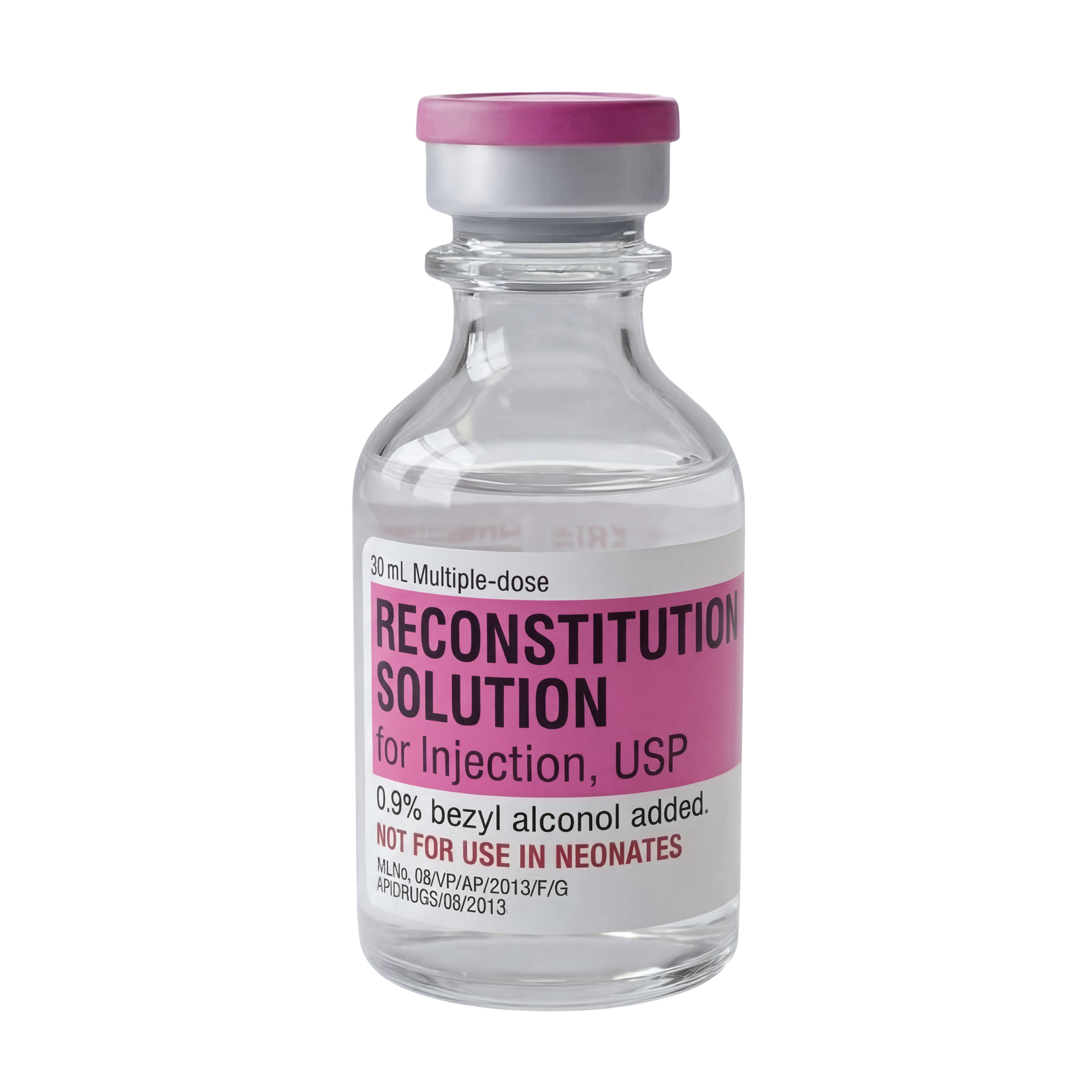 Reconstitution Solution is a sterile, non-pyrogenic water preparation containing 0.9% benzyl alcohol, serving as a bacteriostatic preservative. It is specifically formulated for mixing, diluting, or dissolving medications intended for injection. The addition of benzyl alcohol helps maintain sterility after initial use, allowing the same vial to be accessed multiple times without compromising safety.